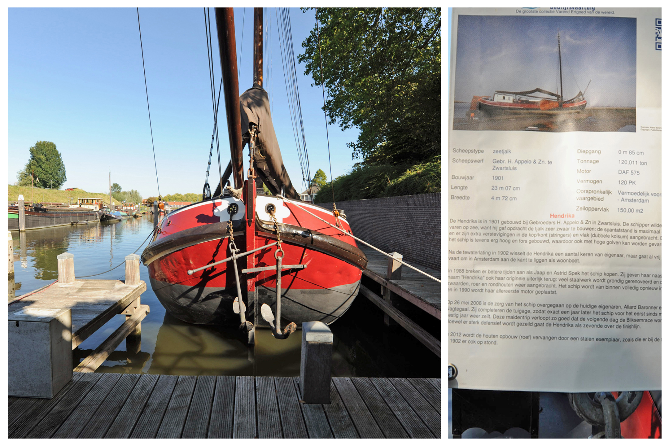 De zeetjalk Hendrika met ligplaats bij Gorinchem staat te koop voor € 345.000,- k.k.